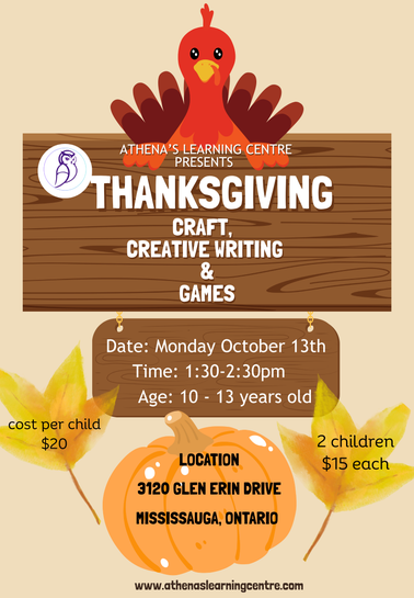 Get ready for a season of fun and creativity with Athena's Learning Centre! We're bringing you exciting Thanksgiving and Halloween events designed to spark joy and learning. Join us for unforgettable experiences right here in Mississauga, Ontario, Canada!